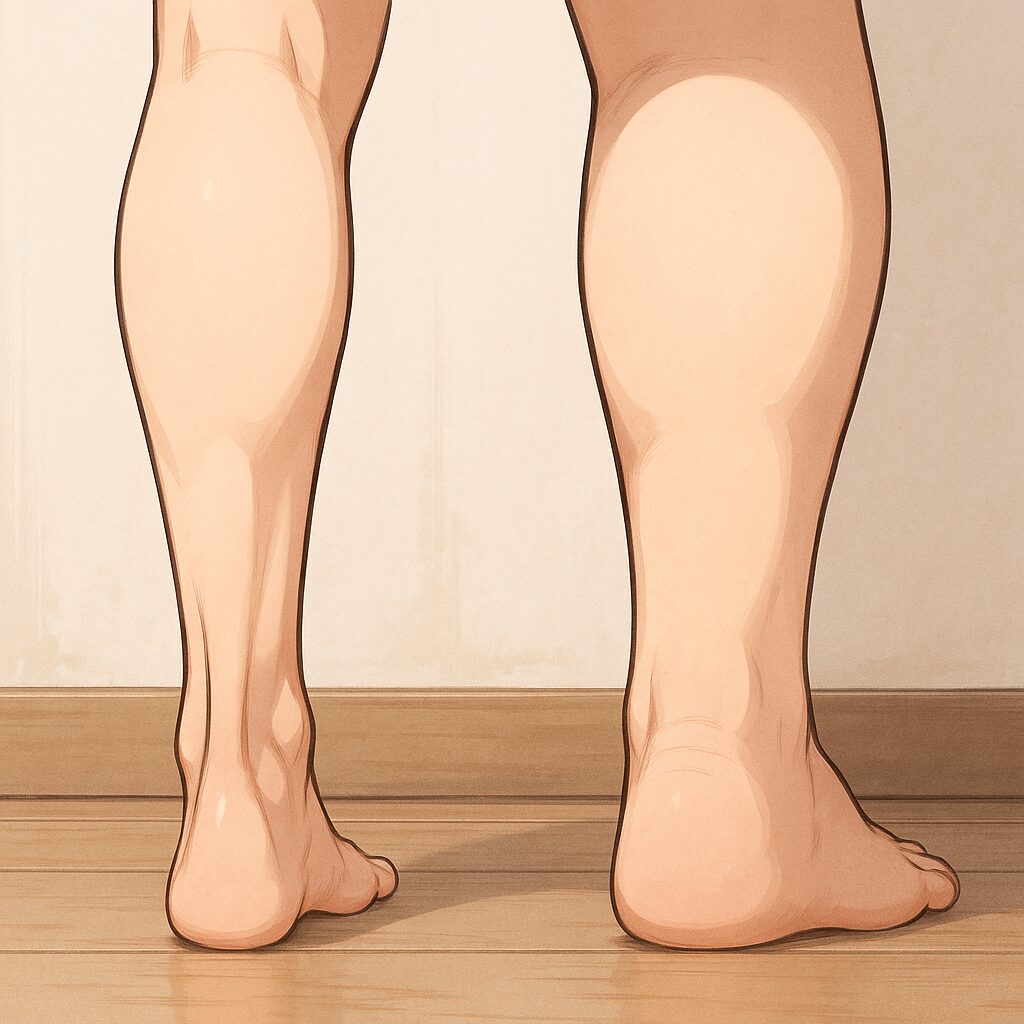 一方、アキレス腱が出ていない人は、足首からかかとにかけての境界があいまいになりやすく、全体的に丸みのある足元になります。