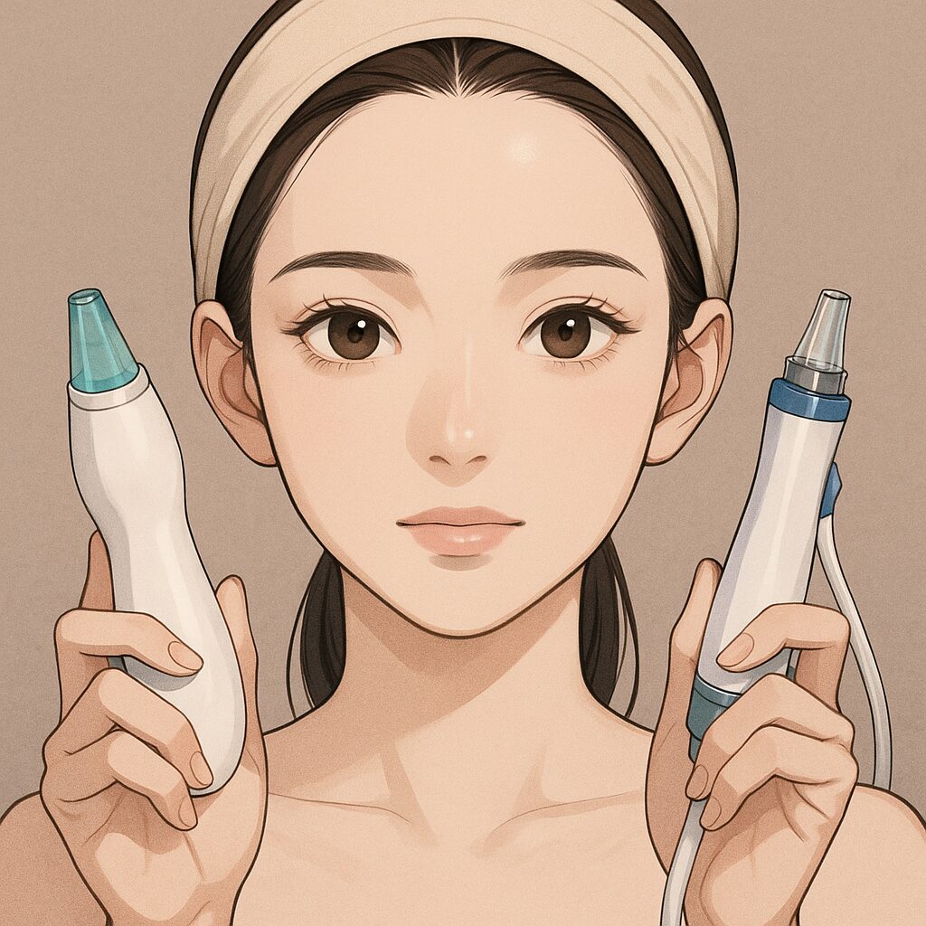もし毛穴の黒ずみや皮脂詰まりが気になるなら、ハイドラフェイシャルの強めの吸引力とピーリング作用が向いているかもしれません。