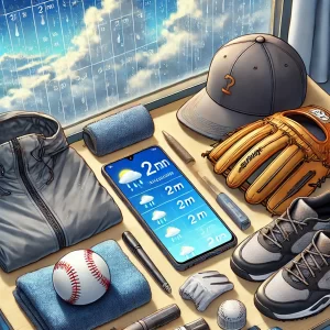 レインウェアや防水キャップ、タオル、替えのユニフォームなど、必要になりそうなアイテムはあらかじめ揃えておきましょう。