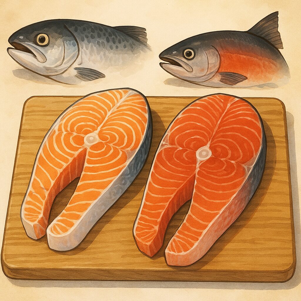 混乱しないためにも、「マスは少し小さめであっさり」「サケは脂がのっていてしっかりした味わい」というイメージを持っておくと便利です。